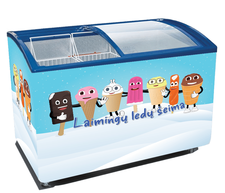 Darbas: ledų veikėjų iliustracijų kūrimas ir lipdukų šaldytuvams maketavimas