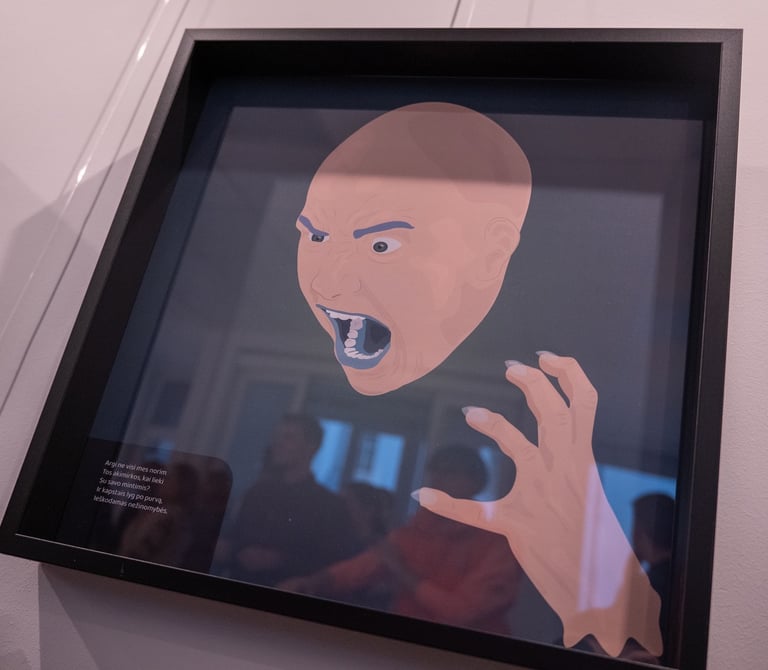 Aprašymas: Paroda “𝗟𝗲𝗶𝘀𝗸 𝘀𝗮𝘂 𝗝𝗮𝘂𝘀𝘁𝗶” gimė iš idėjos jog nėra blogų ar gerų emocijų, yra tiesiog emocijos ir viskas gerai jas visas jausti. Liūdesys nėra bloga emocija, laimė nėra tik gera, juk net su laime kartais sunku išbūti savy, o liūdesys ar pyktis gali atvesti prie tam tikrų teigiamų gyvenimo pasirinkimų.